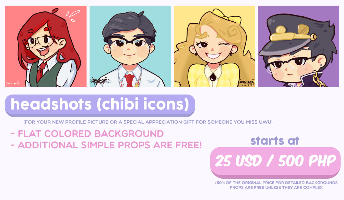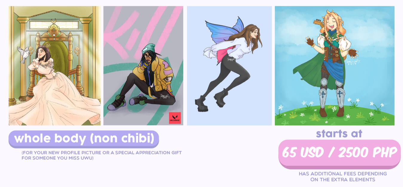 Payment is upfront via Paypal (for INTL clients) and Gcash, Palawan Express etc. (for locals; PH based clients) prior to the start of the artwork.